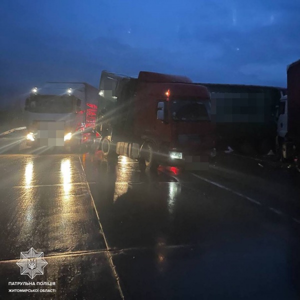 "У зв’язку з дорожньо-транспортною пригодою без потерпілих, що сталась на автодорозі Київ-Чоп (об’їзна дорога Житомира), поблизу села Кам’янка Житомирської області, рух транспорту в напрямку міста Рівне ускладнений", - повідомили в поліції.