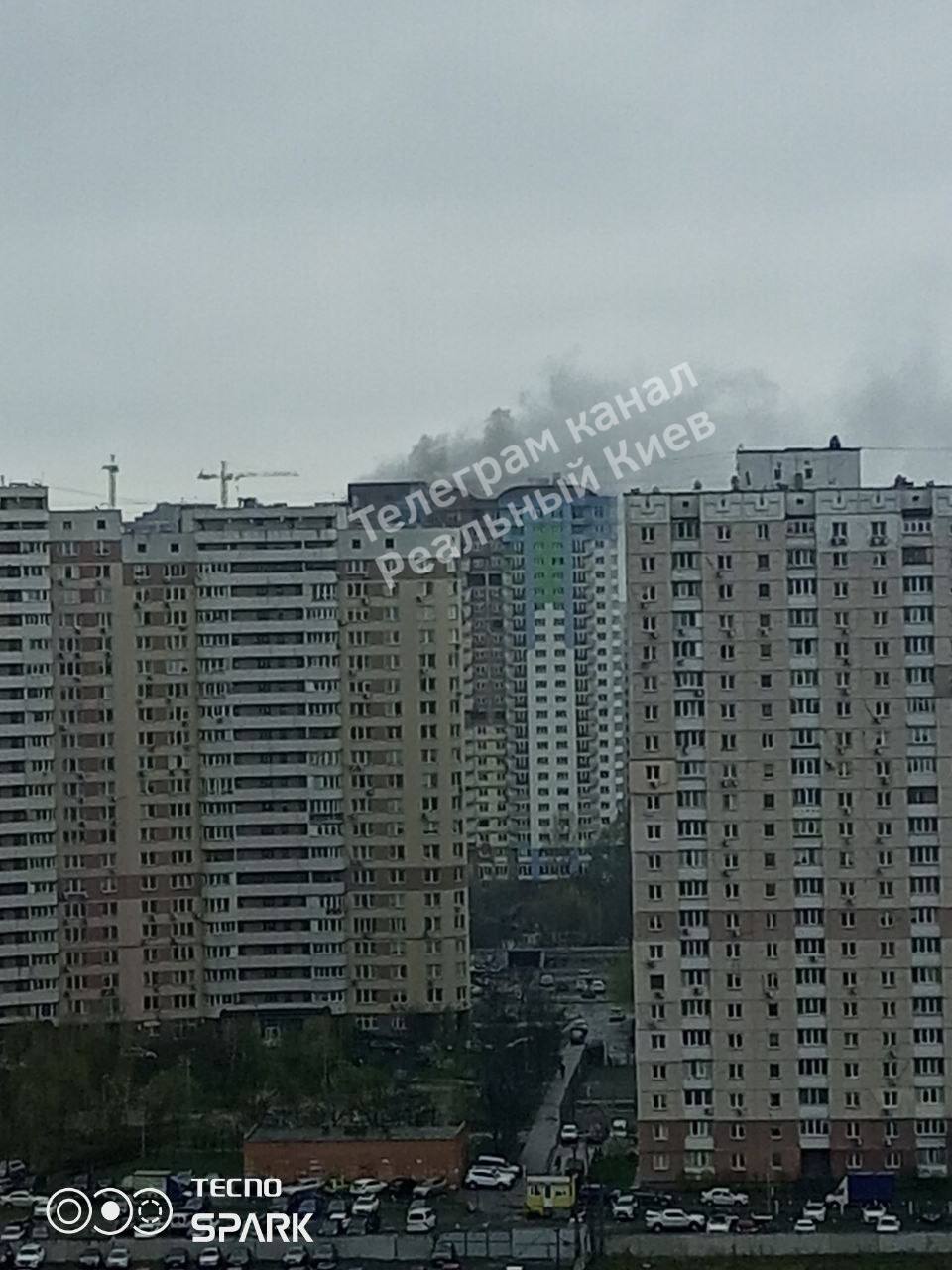 У Києві на Позняках горить недобудова на вулиці Здолбунівській. Судячи з фото, горять верхні поверхи 25-поверхової будівлі.