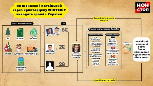 Згідно з повідомленням правозахисної організації ГО "НОН-СТОП" , криптовалютна біржа Whitebit, незважаючи на свою популярність, насправді була створена для того, щоб депутати з проросійських партій, які підтримують зв’язки з Росією, могли легалізувати та відмити гроші, зароблені в Україні.