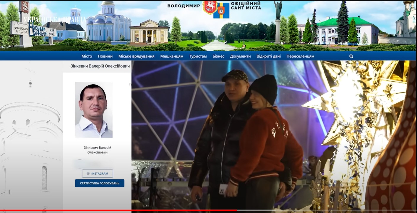Це – Валерій Олексійович Зінкевич, депутат Володимирської міської ради Волинської області. Ось він, у компанії молодої особи, яку інтимно обіймає нижче за спину: