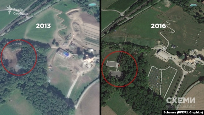 «Прибудова під назвою «амбар» – призначена для перетворення на будівлю, житлову площу на двох рівнях з оздоровчою зоною та відкритим басейном», «невелика будівля в саду, призначена для перетворення на садовий сарай або місце для барбекю», «прилеглий ландшафт після перетворення включатиме тенісний, баскетбольний і футбольний майданчики». Спортмайданчики, відповідно до супутникових знімків, з’явилися біля замку в 2016 році.