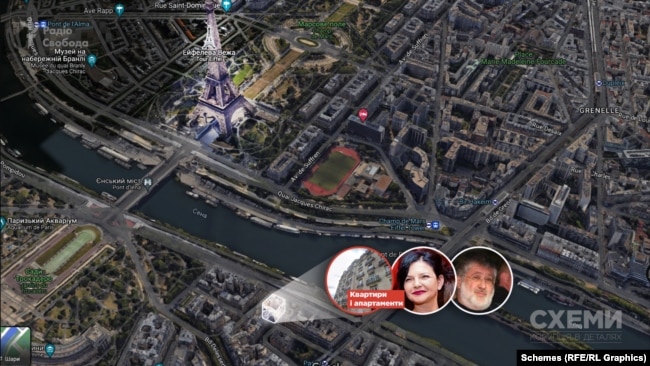 На французькі компанії, кінцевим бенефіціарним власником яких є сестра Ігоря Коломойського Лариса Черток, зареєстровані дві квартири, четверо апартаментів, два підвальні приміщення і два паркомісця навпроти Ейфелевої вежі у Парижі. Також Черток володіє замком, зведеним у 15 столітті, поблизу французького берега Женевського озера та господарськими будівлями і земельними наділами поруч із ним. Про це йде мова в розслідуванні журналістів "Схем", передає Радио Свобода.