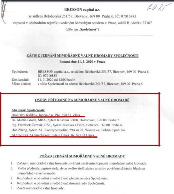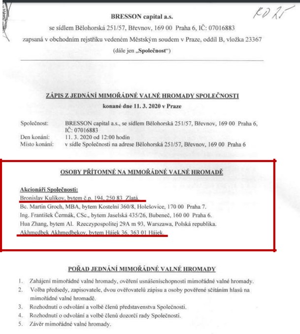 Броніслав Куліков (Bronislav Kulikov) через компанію IKOM ESTATE s. р. о. пов’язаний діловим партнерством з громадянином Росії Михайлом Петровичем Мітрюковим, колишнім співробітником зовнішньої розвідки КДБ СРСР, який довгий час жив у Чехії і контролює мережу агентів російської агентури.