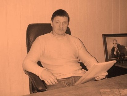 Кадін Владімір при житті в своєму кабінеті боксерського клубу «Роккі» в Волгограді біля портрету Путіна