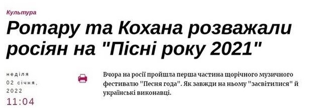 Буквально перед повномасштабним вторгненням РФ в Україну, В.Кохана разом із С.Ротату розважали окупантів, а згодом старанно намагалися приховати віртуальні сліди цього факту, щоби обілити репутацію перед співвітчизниками у ЗМІ. Так, зокрема, Кохана виступала на російському концерті «Пісня року – 2021».