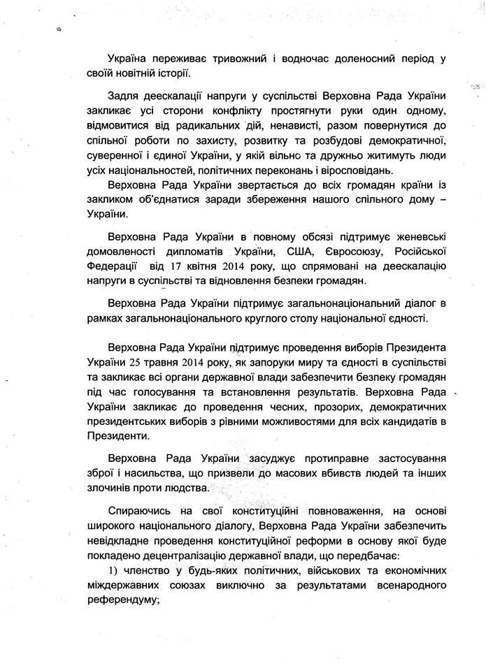 Меморандум про те як здати Україну Кремлю? В сесійній залі роздали проект постанови ВР від Новінського (регіонала-олігарха, який ще нещодавно був громадянином Росії). Під виглядом компромісу "хороших і правильних" слів про мир і злагоду для України в меморандумі прописані всі вимоги, які Москва озвучувала декілька місяців тому назад.