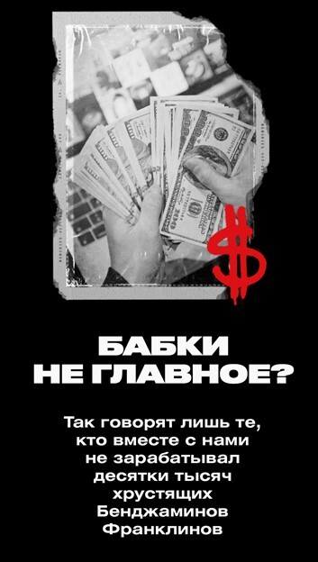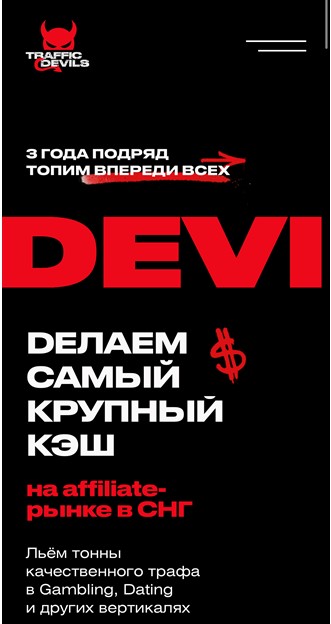 Скрізь натикано «бабки», «ролекси», «тачки», «хати» тощо. Тобто компанія прямо заманює до себе. І, якщо повірити всьому, що пишуть на їхній сторінці — сьогодні ви ніхто, а завтра, завдяки Traffick Devils, живете в кращих традиціях олігархів. Звичайно ж, ні, це так не працює.