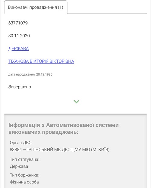 Виходить, що Тихачова керує фейковим підприємством, якого на папері немає. Єдине, що є на Тихачову — 2020 року проти неї було відкрито виконавче провадження, яке наразі вже закрите.