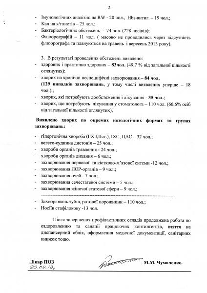 Согласно документу, озаглавленному как «Отчет №1 о проделанной врачами работе», медики провели осмотр 167 человек (!). Работягам Мегажирья делали кардиограммы, брали анализы крови и мочи, проводили ультразвуковое исследование и прочие процедуры (см. фото документа ниже).