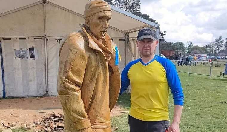 Захисника Олександра Мацієвського, розстріляного російськими загарбниками після слів "Слава Україні", увічнили у скульптурі з дерева. Загиблого Героя майстерно зобразив скульптор Микола Гліба.