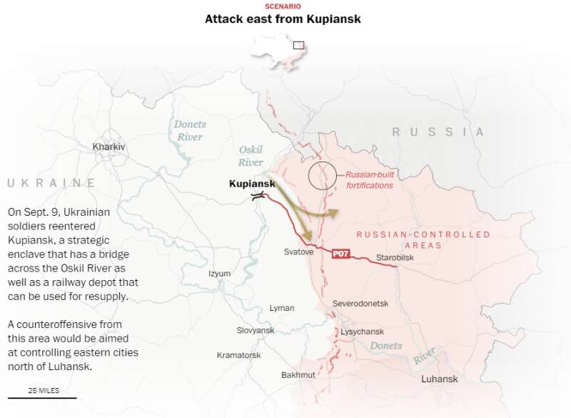 За іншими даними, Україна може розпочати атаки з Бахмута, де тривають запеклі бої. Також можливі атаки із Куп’янська Харківської області. Це дозволить звільнити територію Луганської області.