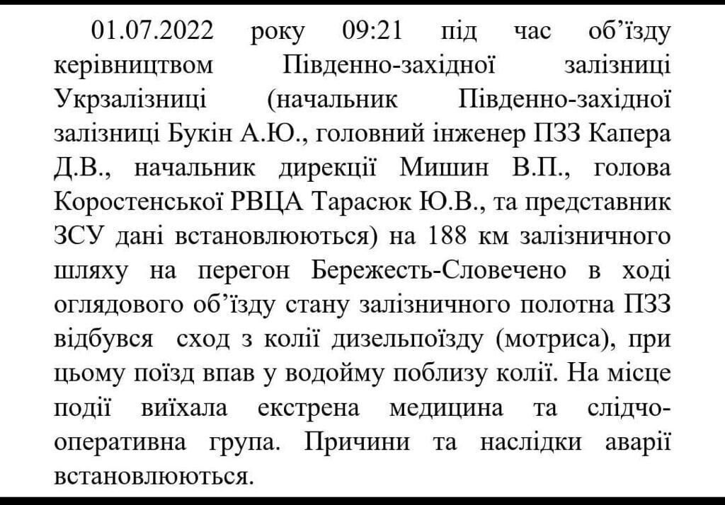 Серед них і голова Коростенської дирекції, головний інженер "Південно-Західної Залізниці", начальник безпеки УЗ В’ячеслав Бабак та інші.