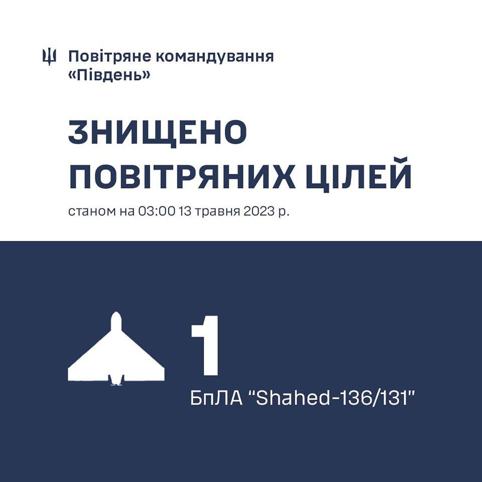 Військові повітряного командування "Південь" знищили ворожий дрон-камікадзе в ніч на 13 травня.