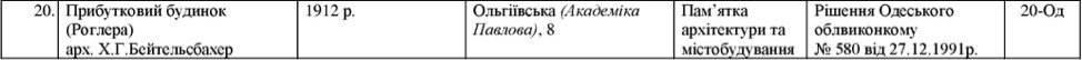 Згідно з Указом Міністерства культури і туризму України від 16.06.2007 р. будинок на вулиці Ольгіївській №8 було внесено до Державного реєстру нерухомих пам’яток України як об’єкт культурної спадщини.