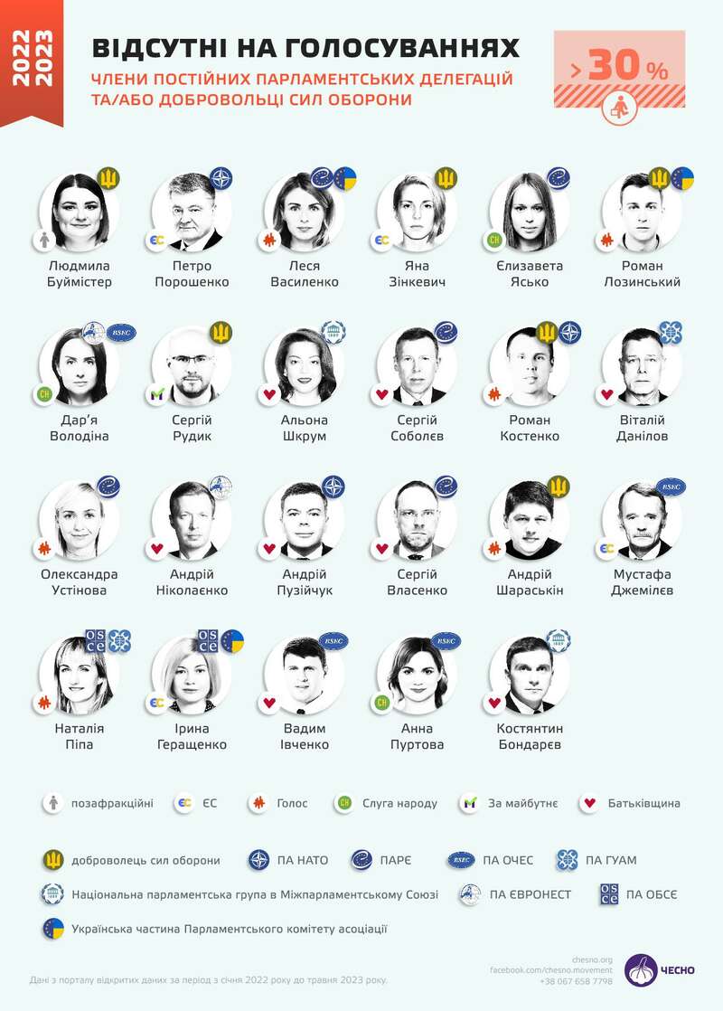 З огляду на отримані дані під час воєнного стану ми не вносимо таких депутатів до лав прогульників і не відображаємо їх на графіці за наявності пропусків.