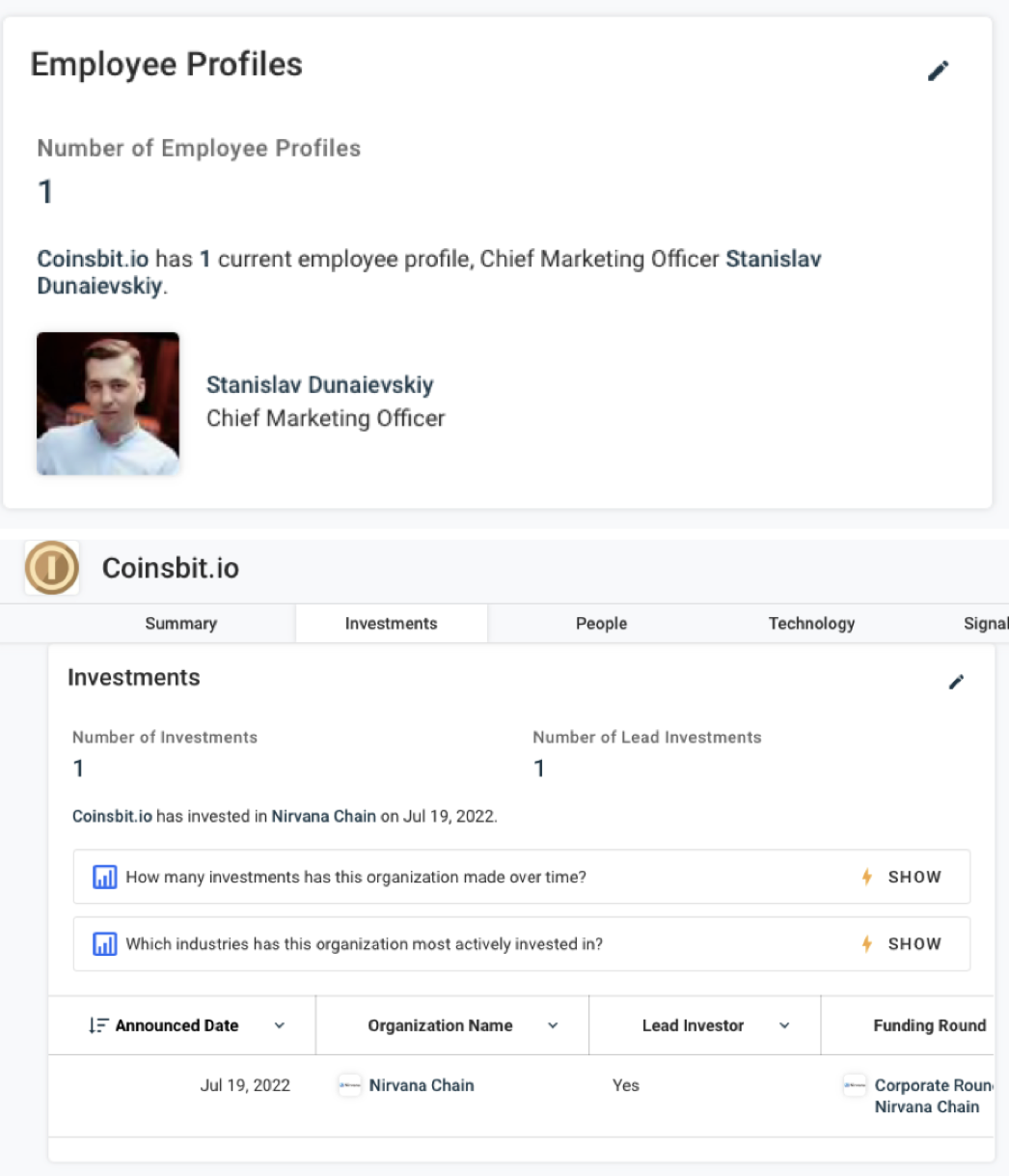 Це підтверджується наступним: Микола Удянський придбав біржу LocalTrade у вересні 2020 року після продажу у листопаді 2019 року біржі Coinsbit. Є підозри, що сам продаж останньої був фіктивний, бо є інформація, де фігурує харківський менеджер в якості керуючого компанії Coinsbit станом на сьогодні, а сама компанія просто інвестувала всі свої гроші в іншу китайську криптокомпанію.