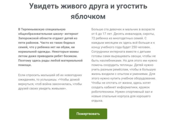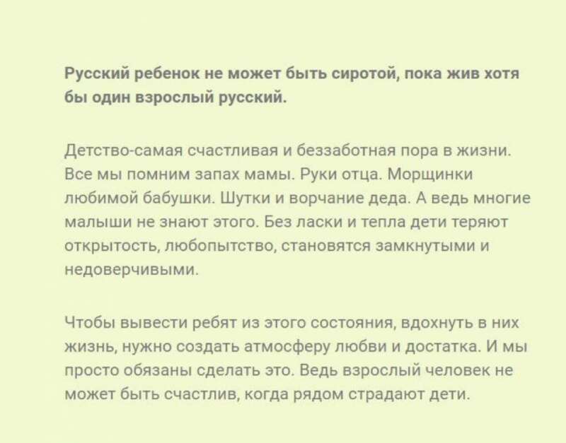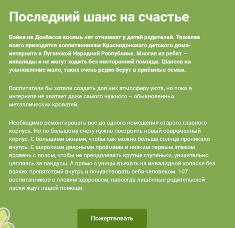 Вона залишила посилання на фонд, який називає дітей, що залишилися без батьків на тимчасово окупованих територіях України, "росіянами". В описі до зборів там використовуються російські наративи про "вісім років війни на Донбасі", а також про те, що діти нібито втратили будинки через "українські снаряди".