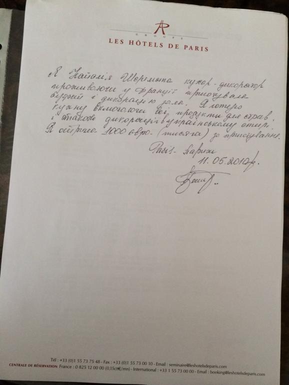 Наприклад на організацію круглого столу в Парижі, який відбувся 9-11 травня 2010 року, були витрачені десятки тисяч євро. Зокрема лише на підготовку зустрічі з сенатором та круглого столу-зустрічі з французькою громадськістю було витрачено 8 тис. євро.