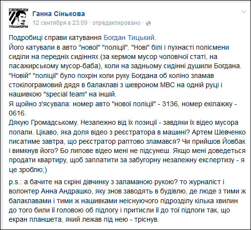 Установлен патруль полиции, в котором милиция избивала Богдана Тыцького (ФОТО)