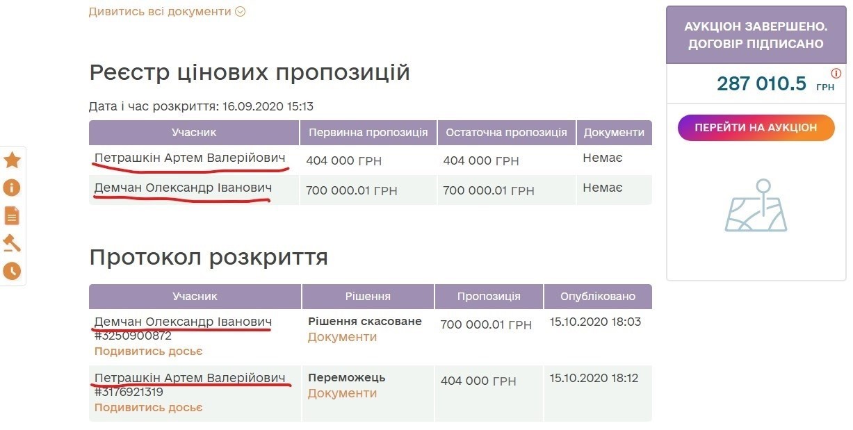 В будь-якому випадку, що стосується осіб, які безпосередньо вигравали аукціони (в тому числі і для Укрексімбанку), або забезпечували "масовку" на торгах, то «в парі» з Артемом Петрашкіним можна часто побачити арбітражного керуючого Олександра Демчана (зараз цей ліквідатор намагається продати майно банкрута ТОВ «Айс Термінал» попри судові арешти та інші юридичні неузгодженості у справі).