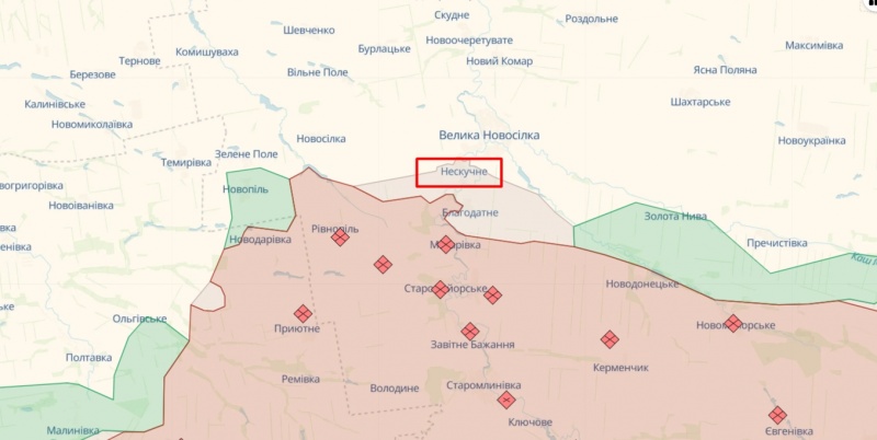 Згідно з актуальною картою помітно, що змінилася ситуація у Запорізькій області. Зокрема у Лобковому, Левадному та навколо Ненудного.