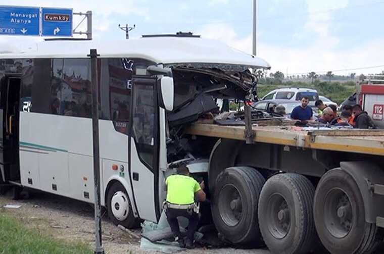 Автобус, який віз відпочивальникыв з готелів Аланії в аеропорт, влетів в припарковану на узбіччі фуру. Внаслідок аварії водій (чоловік, який торік пережив серцевий напад) помер на місці. Передбачається, що причиною ДТП стала втрата ним управління.