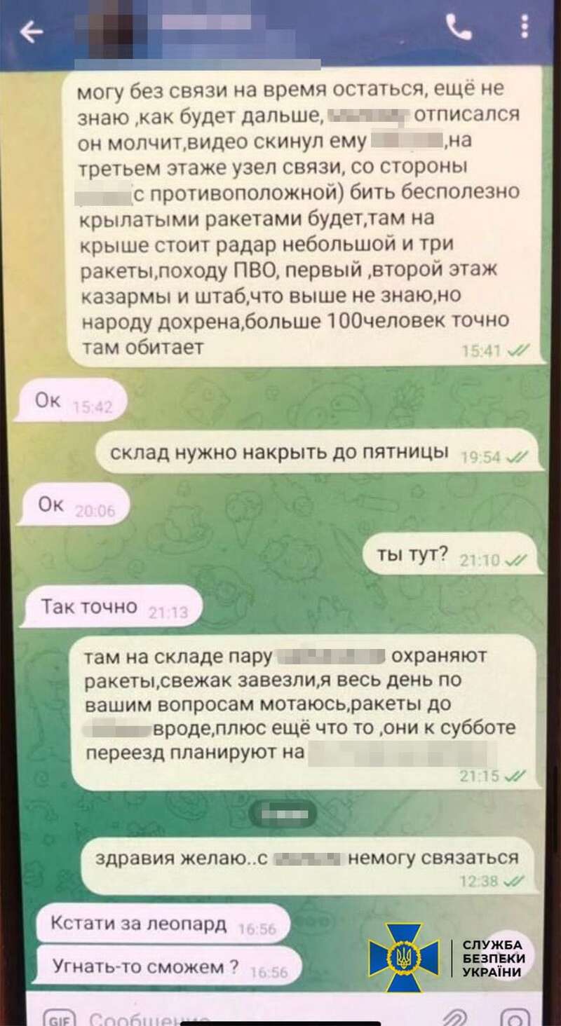 За даними СБУ, насамперед російську воєнну розвідку цікавили локації складів з боєприпасами і маршрути пересування важкої бронетехніки ЗСУ, у тому числі танків "Леопард" і бойових машин піхоти "Бредлі".