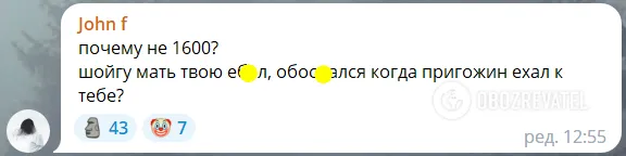 Дехто пригадав голові Міноборони країни-агресора події 24 червня, коли власник ПВК "Вагнер" Євген Пригожин влаштував заколот проти військового керівництва РФ.