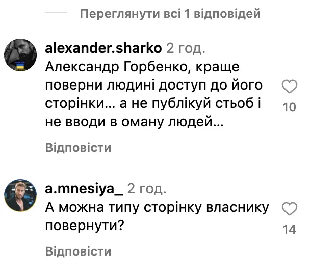Фанатів співака це обурило. Вони переконані, що продюсер Горбенко вкрав у Винника сторінку і тепер намагається просувати свій новий проєкт за допомогою його аудиторії.