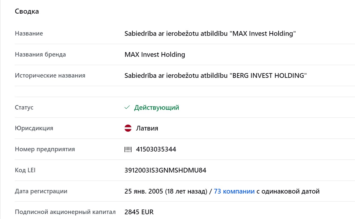З 20 червня 2022 року його бенефіціаром є Batura Jurijs, проте історія та зв’язки ТОВ «Макс інвест холдинг» дуже цікаві. По-перше, ТОВ «Макс інвест холдинг» є не лише засновником постачальника латвійських запчастин до Росії, російського ТОВ «Стропа», а має частку в Даугавпілському заводі приводних ланцюгів Ditton pievadķēžu rūpnīca: