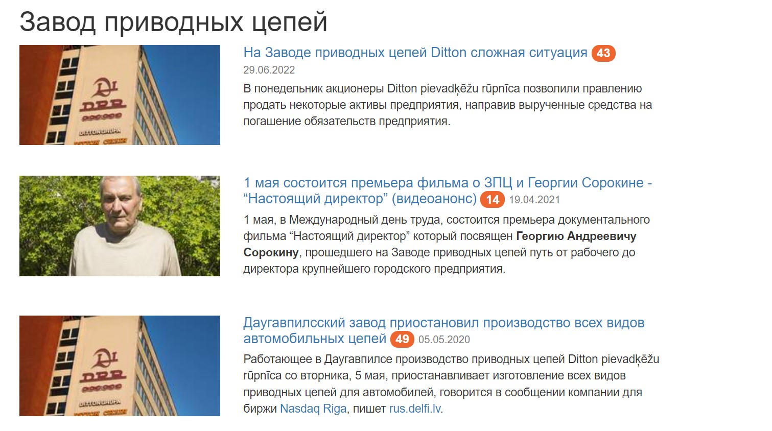 Що стосується самого Даугавпілського заводу приводних ланцюгів Ditton pievadķēžu rūpnīca, то він постійно потрапляє до кримінальних зведень. В основному це пов’язано з несплатою податків і штрафними санкціями, що накладаються за це. Однак у результаті завод лихоманить, і він часто припиняє свою роботу.