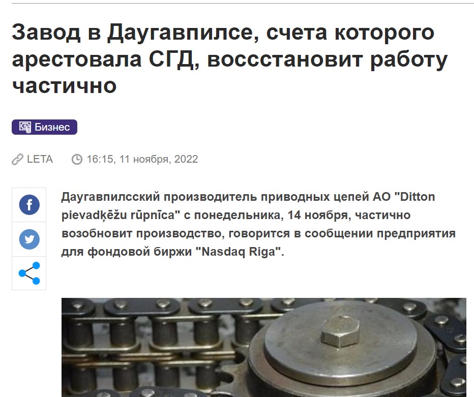 Чи було серед одержувачів приводних ланцюгів ТОВ «Стропа», які встановлювали їх на УАЗи, яке воювало в Україні – встановити не вдалося. Але станом зараз завод у Даугавпілсі працює в штатному режимі, хоча претензії податкових органів Латвії з нього до кінця не зняті.
