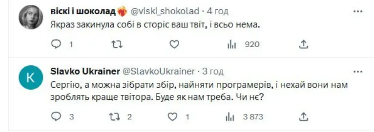 Сергій Стерненко, громадський діяч, блогер та волонтер, опублікував пост про те, що Threads видалив його допис про війну. Формулювання стандартне: "Ми видалили ваші матеріали (допис у Threads), оскільки вони порушували наші правила спільноти (мова ворожнечі або ворожі символи).