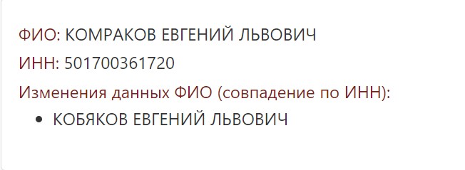 Щодо ще одного учасника проекту з виведення грошей – Євгена Комракова – то він взагалі зник. Причому – буквально. Але нічого страшного з ним не сталося. Він просто змінив прізвище і тепер є абсолютно чистим перед законом громадянином Кобяковим Євгеном Львовичем: