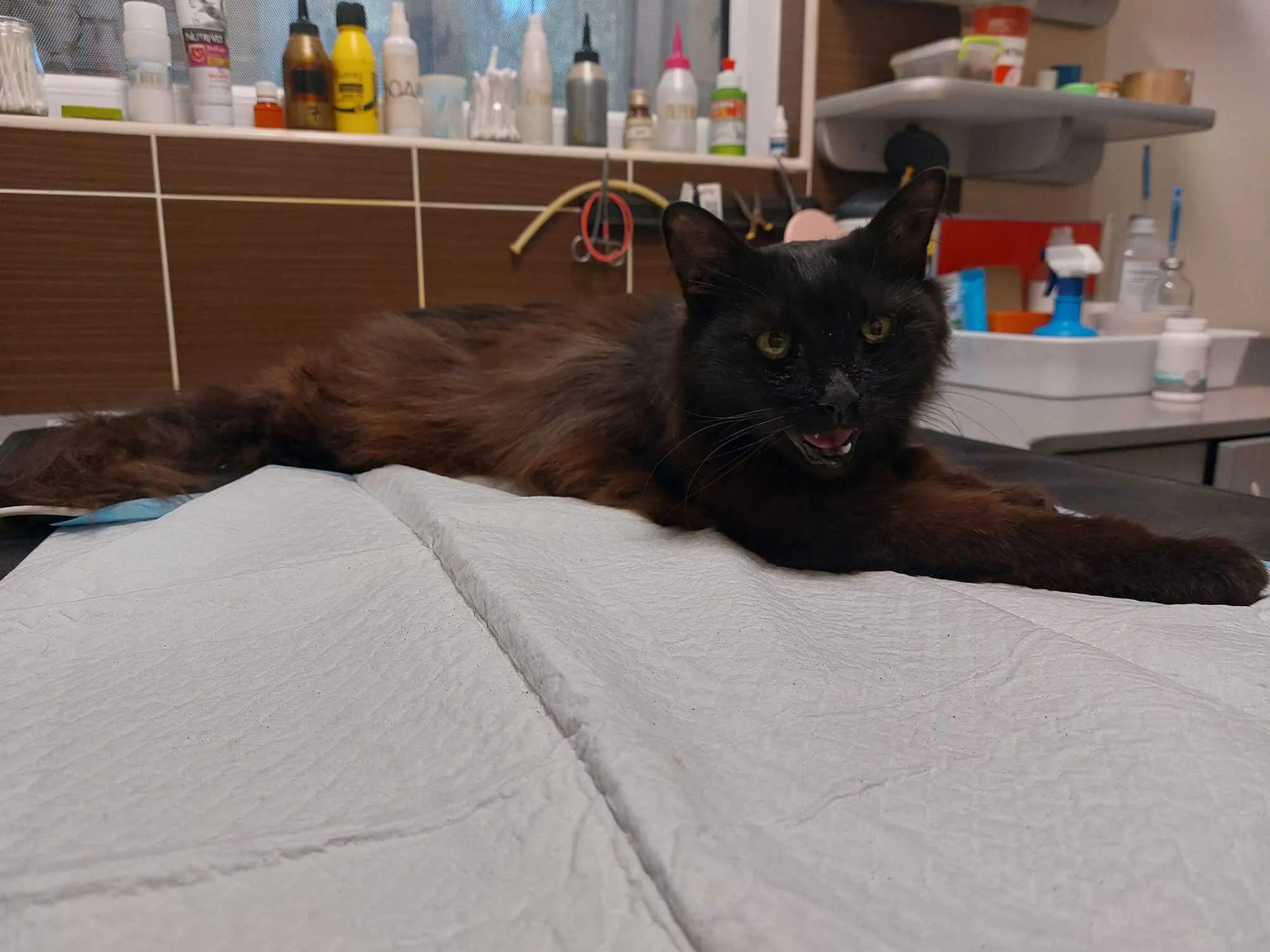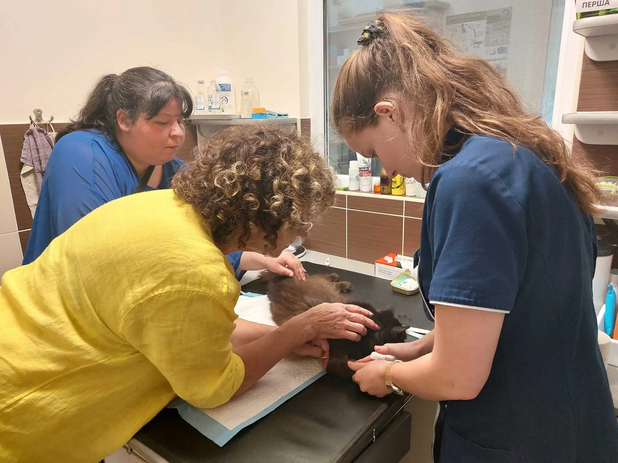Тварина знесилена та зневоднена, але у ветеринарній клініці навіть намагалася поїсти. Про це на своїй сторінці у Facebook повідомила мешканка зруйнованого будинку Оксана Кошак, керівниця громадської організації "Світова асоціація з питань тварин України" UPAW.