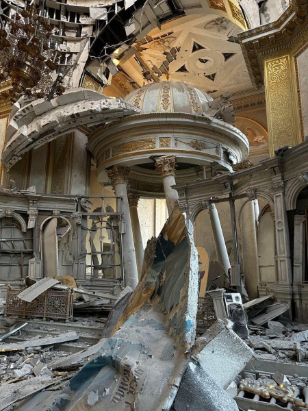 Спасо-Преображенський кафедральний собор в Одесі обстріляла 23 липня російська армія. Через ракетну атаку собор частково зруйнований.