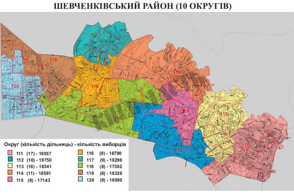 10 округов будут функционировать в столичном Шевченковском районе, в них избирателей примут 106 избирательных участков. Ожидается, что здесь свой выбор могут сделать около 180 676 человек.
