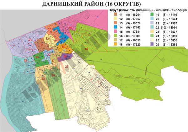 В Дарницком районе созданы 16 округов, в которых будут работать 136 избирательных участков при ориентировочной численности избирателей около 281 тыс. 396 человек.