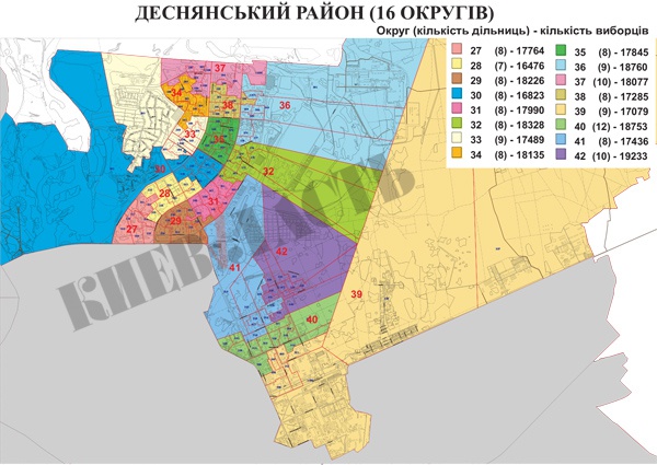 В Деснянском районе созданы 16 округов, в которых будут работать 138 избирательных участков при ориентировочной численности избирателей около 285 699 человек.