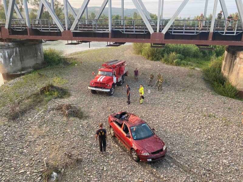 У результаті руйнування мосту в річку Тересва впали 2 транспортні засоби: один вантажний і один легковий автомобілі.