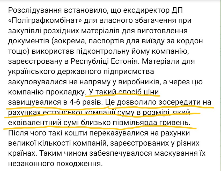 Утім, на такий сценарій сподівань мало – закупівлі у ДП «Поліграфкомбінат Україна» НАБУ було змушене розслідувати лише тому, що на них натиснули європейці – не забуваймо, що фірма-прокладка Степанова була зареєстрована в Естонії, і саме естонці розпочали слідство. В умовах, коли Україна повністю залежна від колективного Заходу, ігнорувати естонців не вдалося. До того ж, естонці були не самотні – як заявляють у НАБУ, «злочин викрито в рамках співпраці міжнародної слідчої групи зі слідчих України, Естонії та Франції під егідою Євроюсту». Зрозуміло, що в такій ситуації Україна нічого не змогла зробити та проігнорувати документи, отримані від французів та естонців, просто не вийшло.
