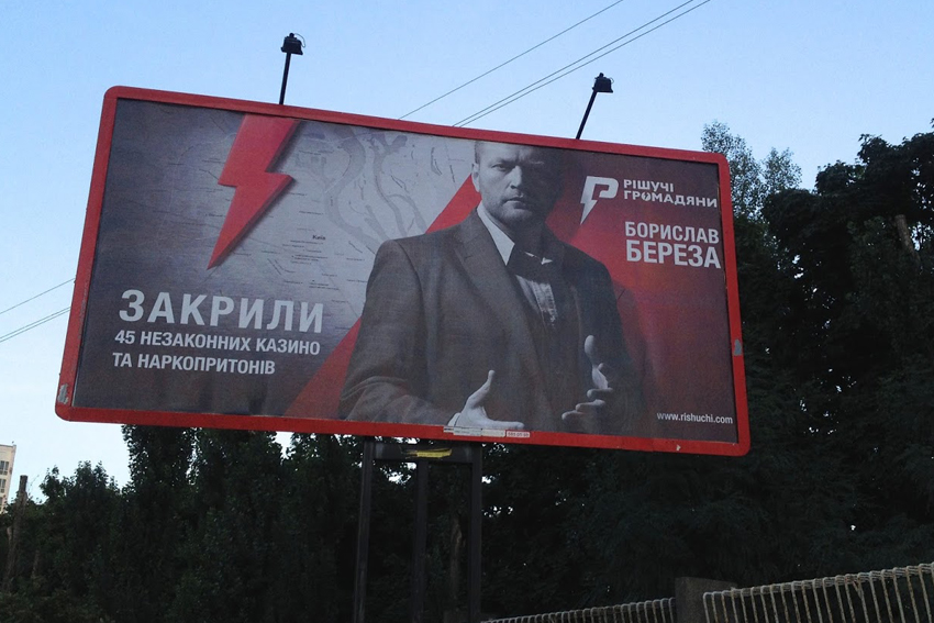 Авторы плакатов Борислава Берёзы, которыми увешан весь Киев, не учли, что наркопритоны вряд ли могут быть законными. К тому же фотограф поставил политика в позу, из которой уже пару лет не выходит российский пропагандист Дмитрий Киселёв, живописуя ужасы западного мира.