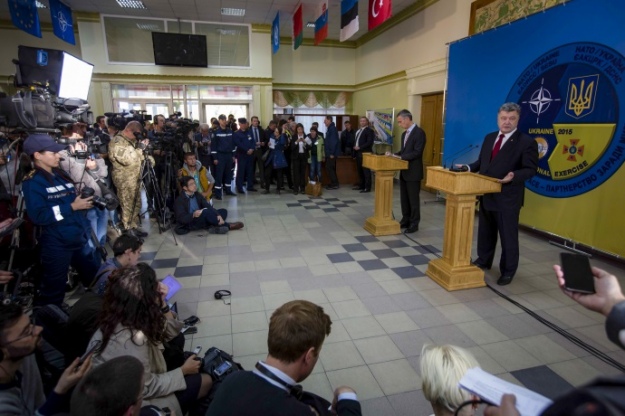 Это заявление президент Петр Порошенко сделал в понедельник на полигоне в Яворове в присутствии генерального секретаря НАТО Йенса Столтенберга и полутора сотен журналистов, которые приехали освещать его первый визит в Украину.