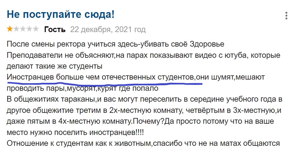 «Щодо освіти: старі та похмурі, часто в маразмі викладачі». Непогано як для «одного з найкращих» медичних вузів країни.