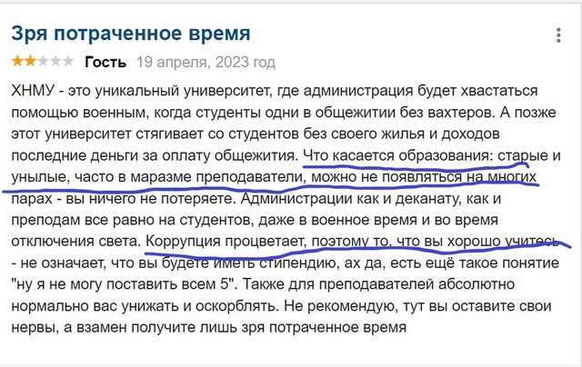 Але є й інші фактори, які підтверджують думку двох студентів ХММУ, які написали просто – «не ідіть сюди» та «даремно витрачений час».