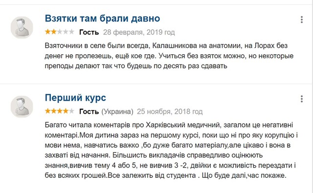 Ні, нас цікавить справжня якість випускників. І причина тут очевидна – завтра ці медики «одного з найкращих медичних вузів країни» прийдуть на роботу. З усіма витікаючими. Для того, щоб хоча б зрозуміти, яку якість знань мають випускники Харківського міжнародного медичного університету, достатньо заглянути на сайти відгуків. І ось що ми маємо: