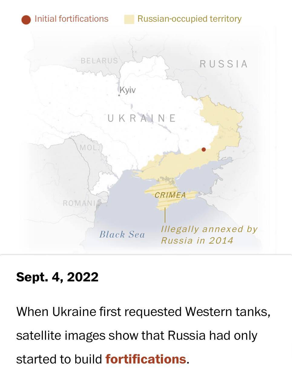Коли Україна вперше звернулася з проханням надати західні танки, росія просто не мала серйозних фортифікацій. Але за півроку окупанти вже збудували "сотні миль укріплень".