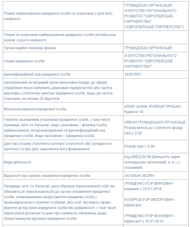 В январе 2014 года «Беня» Ряжев выходит из состава ГО «Европейское партнерство», переписывая ее на «фунтов», то есть, на подставных лиц из категории малообеспеченных граждан Украины. Также, Ряжев увольняется с почетной должности президента общественной организации, подставив вместо себя маргиналов.