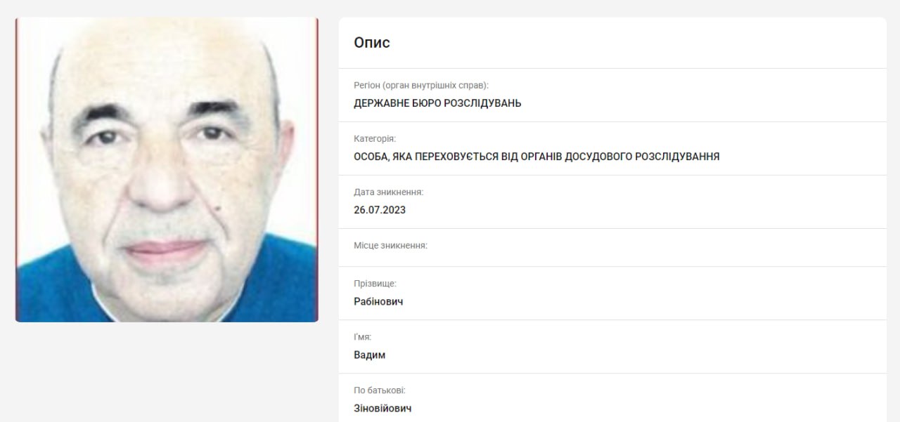 ДБР оголосило у розшук колишнього нардепа від ексОПЗЖ Рабіновича