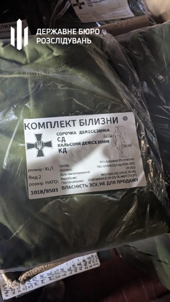 За даними бюро, зловмисники онлайн продавали термобілизну, військову форму, саперні лопатки, військові фляги, військове взуття тощо. На етикетках було вказано "Власність ЗСУ. Не для продажу".
